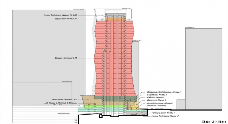 With respect to the tower architect Robert AM Stern said :” … As a New Yorker , I am very honored to have been invited to contribute to this company on the outskirts of a city I love. I wish our bold approach to architecture and urbanism will make a cozy La Défense, and other districts of skyscrapers of the twentieth century, continues to evolve in the future. We are very proud that the Tower Carpe Diem can both contribute to the planning of La Défense and introduce a new spark in his architectural horizon … ”